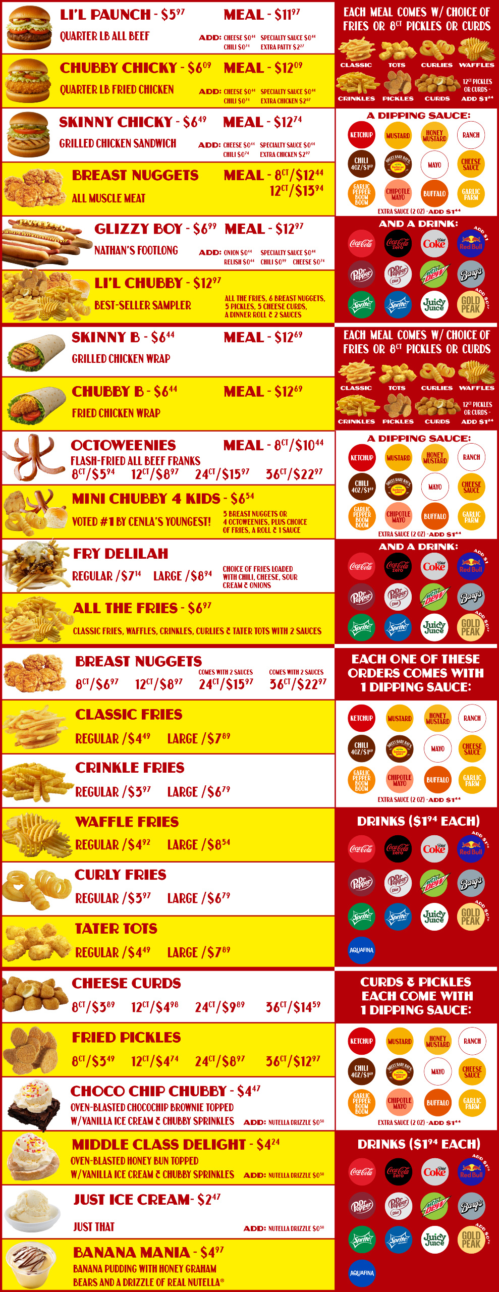 Ever dreamed of all the fries, burgers, wraps, footlong glizzies, chicken, pickles, curds and all the sauces in one single order and then some? Then look no further - Li'l Chubby's is here to solve this life-changing problem.Our Food will keep you and your family coming back for more, whether it's cheat day, kids want a treat after church, or you've earned this delicious experience for no particular reason. Our food is only as good as our People - that's why we offer the safest environment, the best ingredients and amenities not found at any other restaurant.Please come see us at our location!